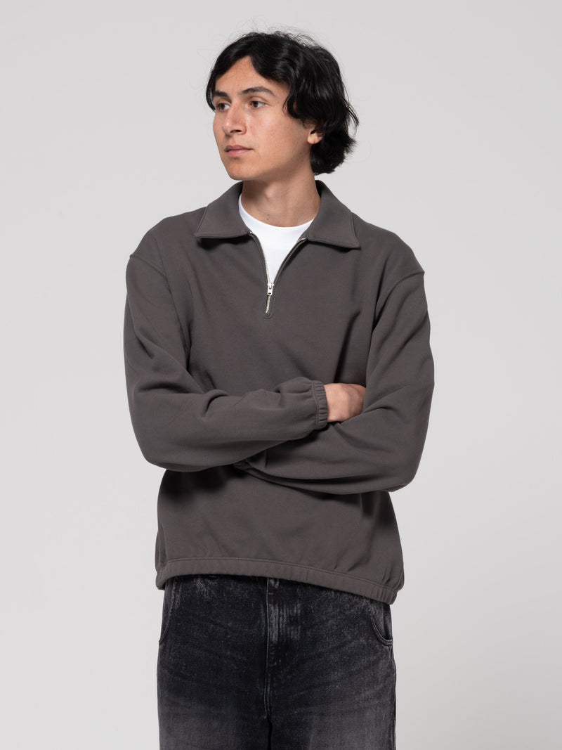 Sweatshirt Quarter Zip, Gris Chiné